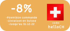 Puisque nous avons fait un bon de réduction pour les livraisons en Belgique, et pour ne pas faire de jaloux, voici un bon de réduction de 8% sur les premières commande des clients Suisse.